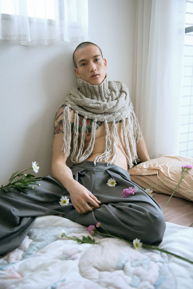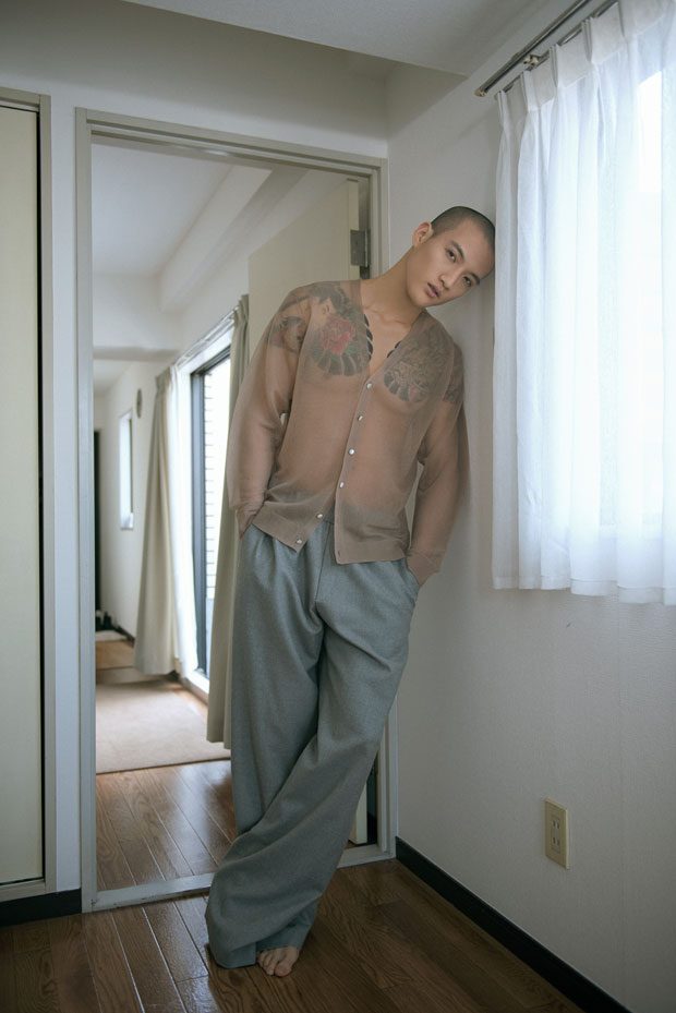 Mundane Things story captured exclusively for MMSCENE Style Stories online exclusives stars the promising Yukihide Harada photographed by Prabowo Prajogio. Image above: Wears Trousers Daniel Hirozawa.