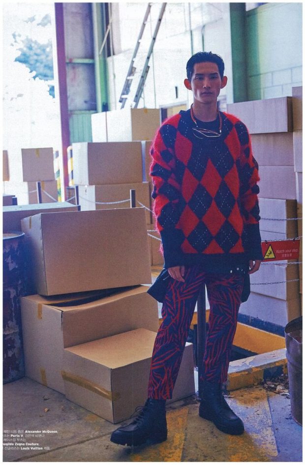 Sup wearing for W Korea piecees from Alexander McQuieen, Eremengildo Zegna Couture and Ports V