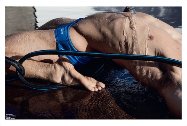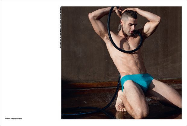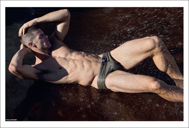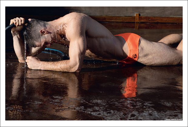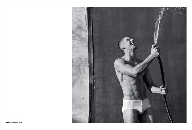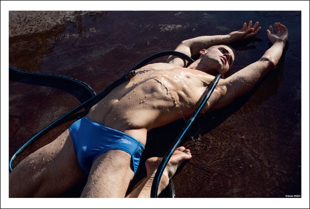 For the session, Chad White is modelling swimsuits from the likes of the iconic Speedo and La Perla to Calvin Klein Swimwear as well as Robinson Les Bains and Ron Dorff.