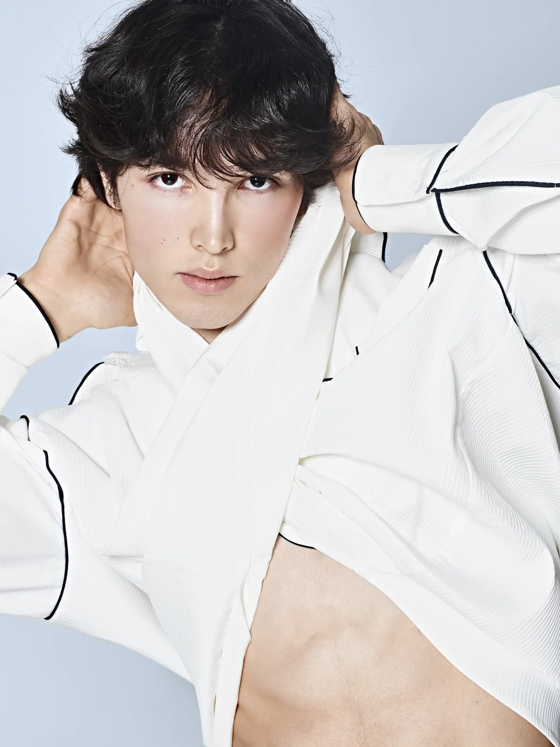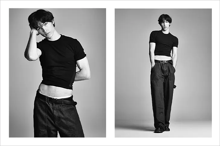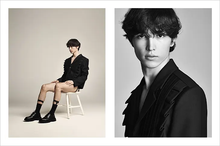 For the latest edition of MMSCENE PORTRAITS, photographer and stylist Maxim Vogel captures model Akmal Donaev in a striking series of visuals. Akmal is represented by Select Model Management. He wears pieces from Neil Barrett, Kim Seo Ryong, Versace, and Zara. The collection also includes items from Chernim Cherno, Banana Republic, Untangomas, and Birkenstock. These looks combine vintage and contemporary styles, showcasing his versatility.