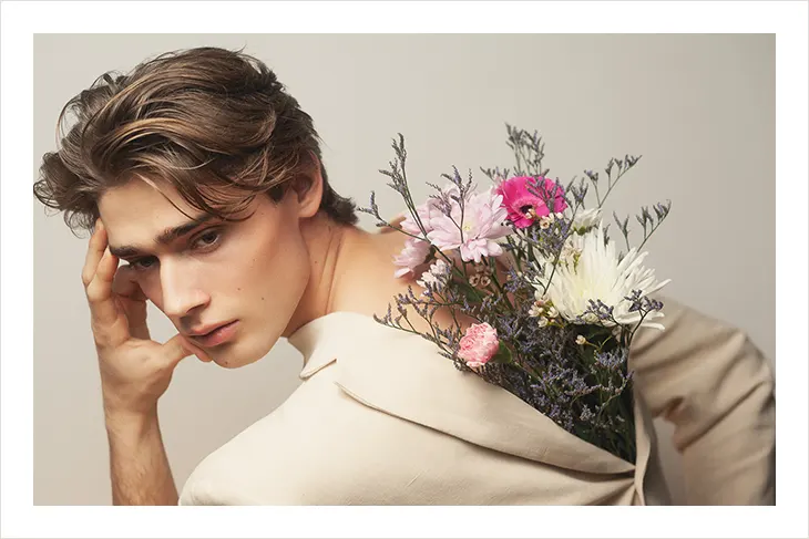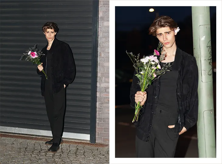 I help myself with knowledge from the time I studied acting. It is similar to preparing a role, you are basically playing one. I make it clear to myself what we want to create in this shooting, what the message is, what my part is, and the emotions that would fit. For me, the more questions I answer in my head, the more I get to the core, the clearer and sharper the results are going to be. I also like music. In the end, a model also has to perform when it’s quiet, so I would not rely on that. Physically, I shave the morning before the shoot. Shortly before, maybe some slight movement to get me going.