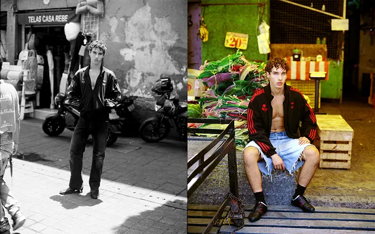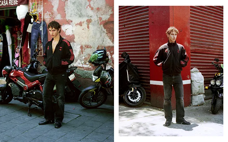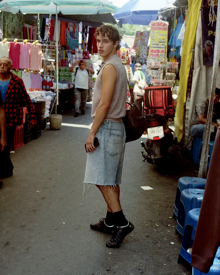 Shot around CDMX’s bustling La Merced neighborhood, the series draws on the everyday energy of the city. Jonah wears Off-White, Yohji Yamamoto, Maison Margiela, Diesel, Willy Chavarría x Adidas, Puma x Ferrari, Balenciaga, and Fear of God, styling entirely his own.