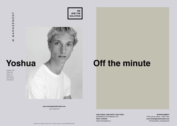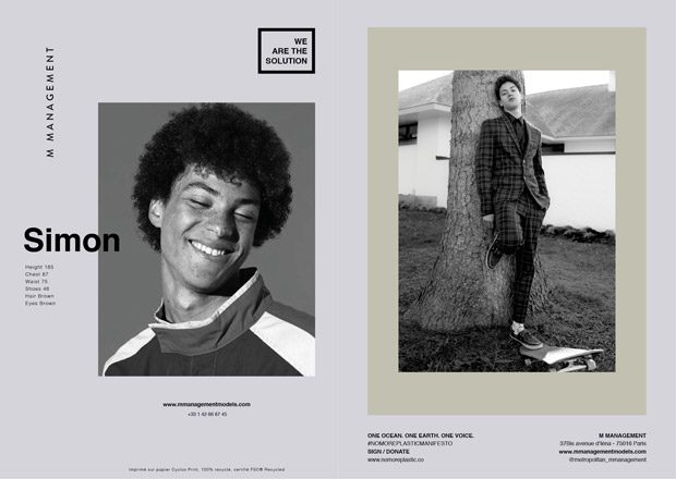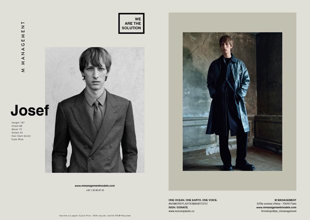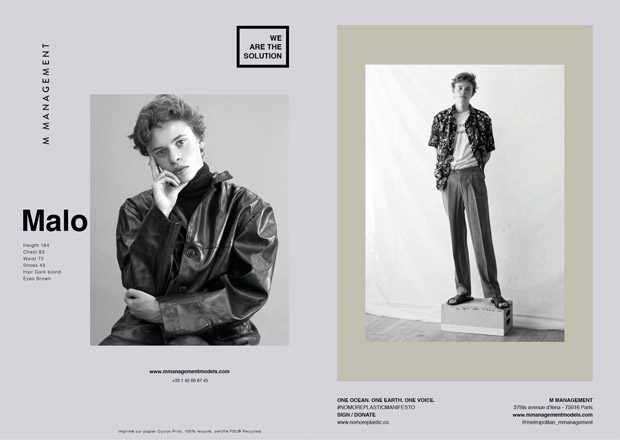 Fashion agency M MANAGEMENT teams up with NO MORE PLASTIC for their Fall Winter 2019.20 WE ARE THE SOLUTION men’s show package, that features over 30 models ready for the upcoming Paris Fashion Week. M MANAGEMENT will also provide 7 solutions to avoid everyday plastics.