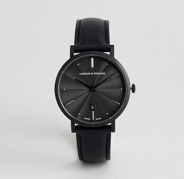 Larsson & Jennings Aurora leather watch in black 38mm at ASOS